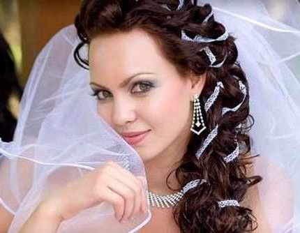 Очень романтично и изысканно смотрится прическа для невесты, в которой соединены как ровные, так и завитые волосы. Как правило, в таких моделях пряди передней части волос укладываются в крупные, элегантные волны, в то время как сзади пряди накручиваются и опускаются стильными свободными локонами.